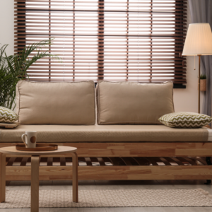 - Woonkamer: Creëer een warme en uitnodigende sfeer met houten jaloezieën of lichtdoorlatende plisségordijnen. Perfect voor het reguleren van licht en het toevoegen van een luxe uitstraling.
